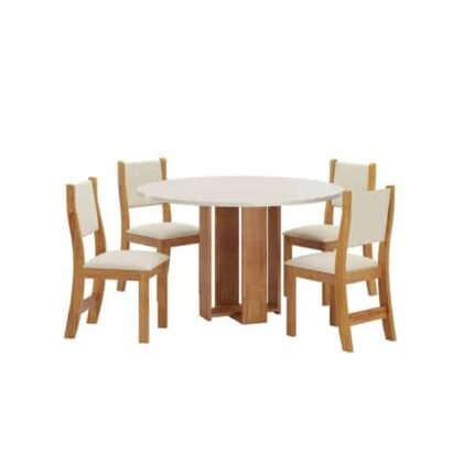 Mesa De Jantar Com 4 Cadeiras Talita Offwhite Com Freijó – Rede Móveis