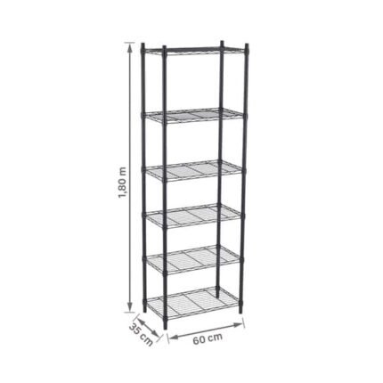 Estante de Metal Aço com 6 Prateleiras Preta Line Aramada 180x60x35cm 300kg Spaceo