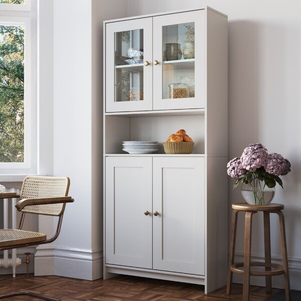 Armário Multiuso Cozinha Americana Com Porta De Vidro Brancogelo