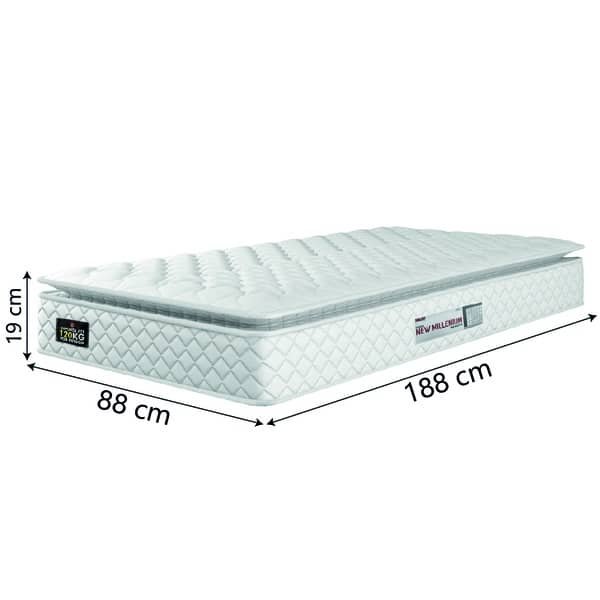 Colchão Solteiro Espuma D33 Pillow Top New Millenium 88x188x19cm Branco Hellen – Suporta Até 120 Kg Por Pessoa