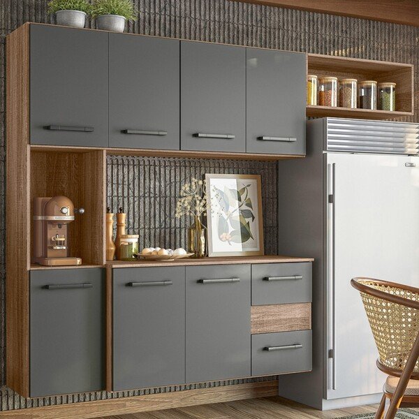 Cozinha Compacta Juliete 7 Portas 2 Gavetas Carvalho Rústico/chumbo – Nicioli