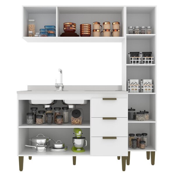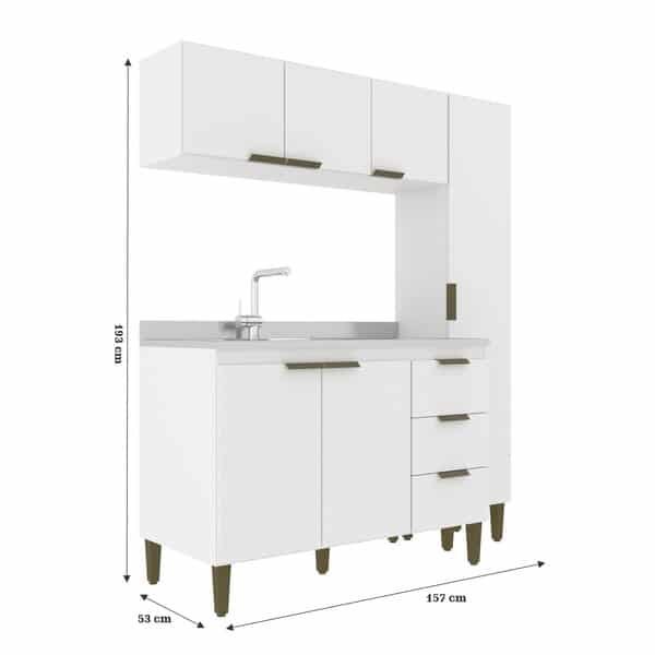 Cozinha Completa 3 Peças 6 Portas 3 Gavetas Bia Branco