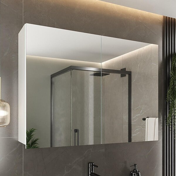 Espelheira Para Banheiro 2 Portas 2 Prateleiras Malbec Branco