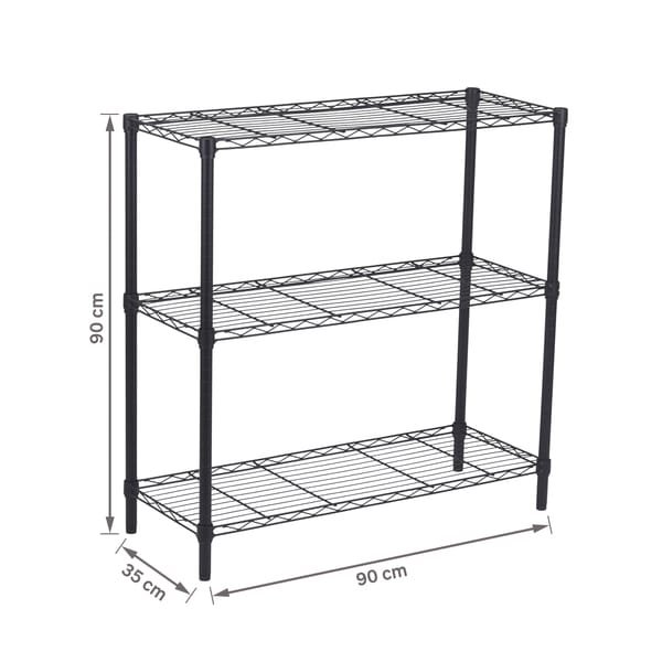 Estante de Metal Aço com 3 Prateleiras Preta Line Aramada 90x90x35cm 150kg Spaceo