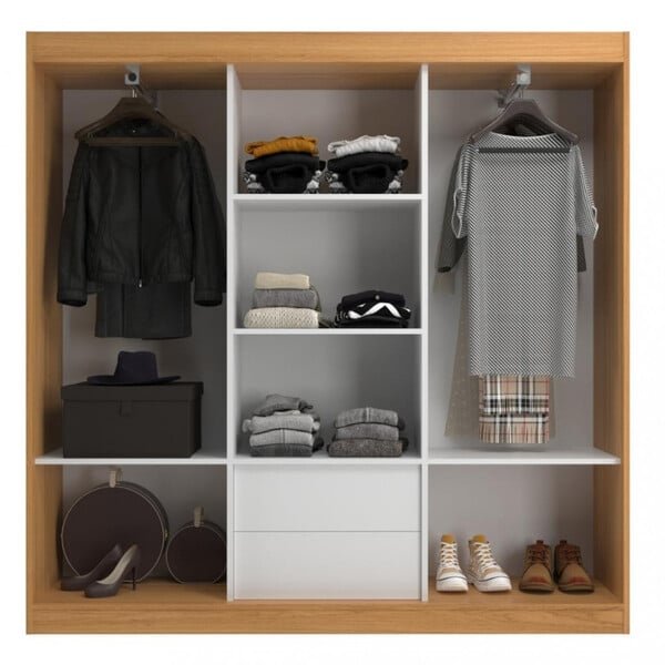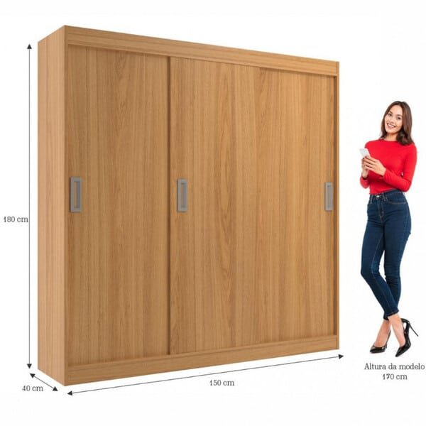 Guarda Roupa Casal 3 Portas De Correr 2 Gavetas Lisboa Evidência Móveis