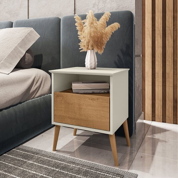 Mesa De Cabeceira 1 Gaveta Pés De Madeira Maciça Cancun Savanaargila