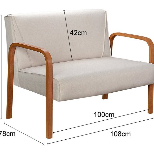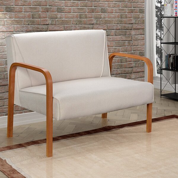 Namoradeira Anita Sofá 2 Lugares Moderna Braço Madeira Linho Bege 140