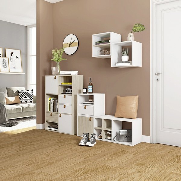 Nicho Modular 104,1×35,9x30cm Madeira Branco Spaceo KUB