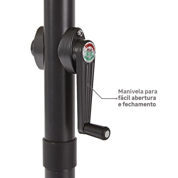 Fácil abertura e fechamento:Conta com manivela para facilitar a abertura e fechamento do Ombrelone com mínimo esforço.
