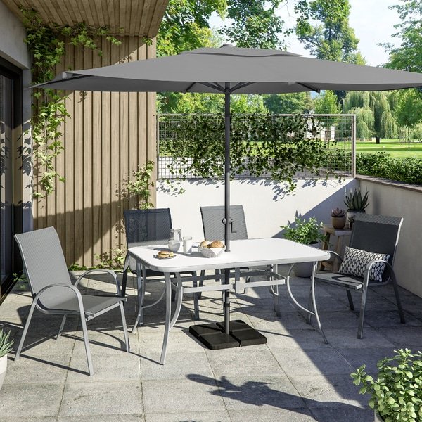 O Ombrelone Polar, da Naterial, é um modelo central em formato retangular com material em aço, o que confere ao produto muito mais resistência. Pode ser combinado com mesa e cadeiras para jardim ou até mesmo uma espreguiçadeira para deixar sua área de lazer muito mais completa.