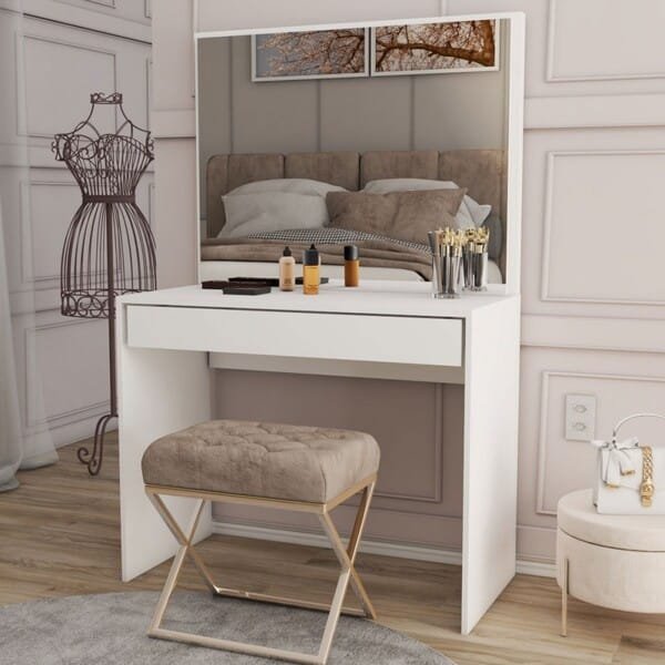 Penteadeira Magnifique 1 Gaveta Com Divisória E Espelho Branco – Panorama Móveis