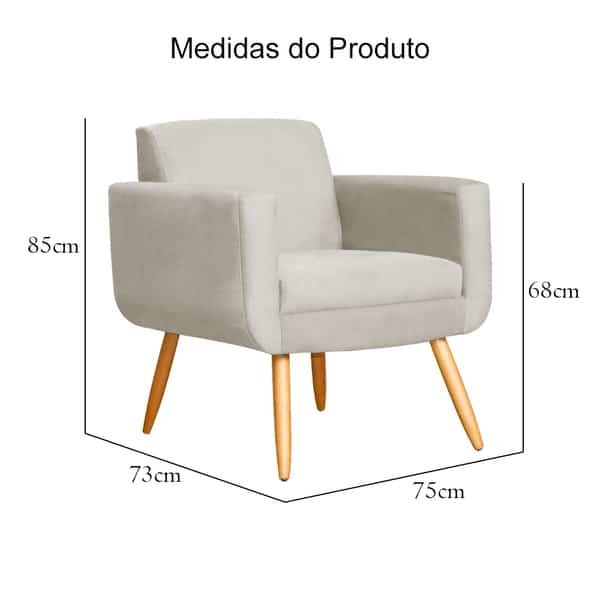 Poltrona Decorativa Cristal Suede Cores – Ds Estofados – Bege