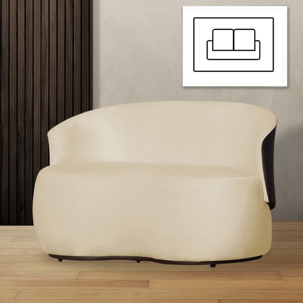 Poltrona Namoradeira Beatriz 2 Lugares Tecido Suede Com Composê Em Corino Marrom – Suede Marfim