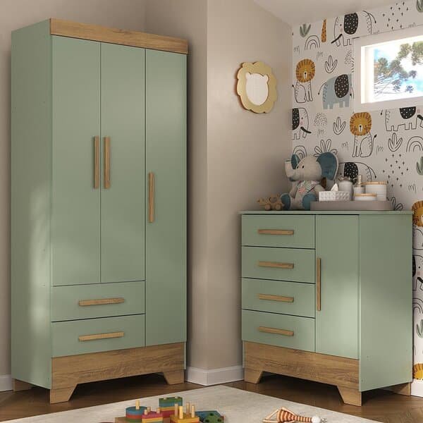 Seja o primeiro a avaliar “Quarto Infantil Completo Guarda Roupa 3 Portas 2 Gavetas Com Cômoda Selene Espresso Móveis Verde Fosconature”