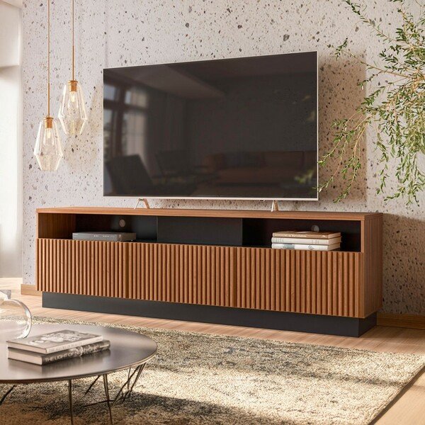 Rack Para Tv Até 75 Polegadas Temaru Ripado 3 Porta Freijópreto Fosco – Pnr Móveis