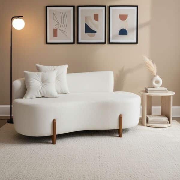 Sofá Orgânico 2 Lugares C/2 Almofadas Curvo Sala Recepção Luna Boucle Pés De Madeira – Montanaris Decor – Boucle Branco