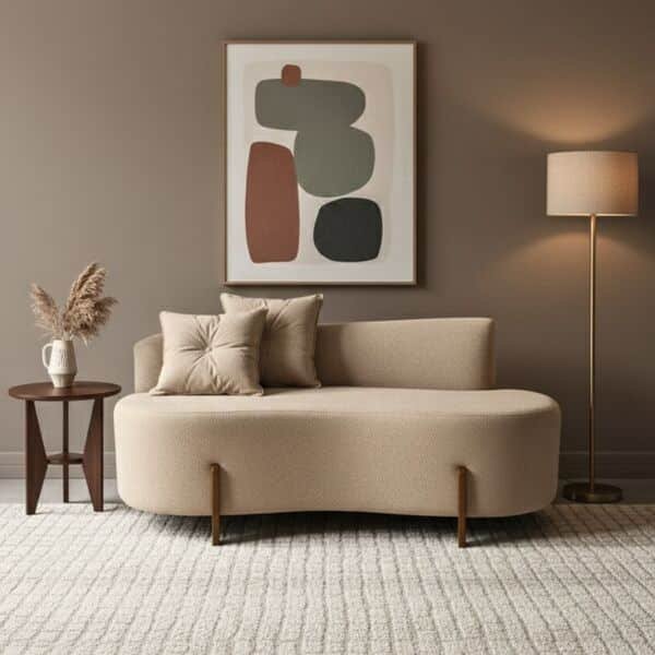 Sofá Orgânico 2 Lugares C2 Almofadas Curvo Sala Recepção Luna Boucle Pés De Madeira – Montanaris Decor – Boucle Bege