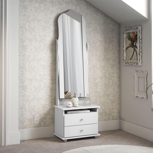 Este toucador é equipado com um ótimo espaço de armazenamento e um espelho deslumbrante, ele é ideal para organizar seus cosméticos e acessórios enquanto você se prepara para o dia. 02 gavetascorrediças metálicasespelho articulado de corpo inteiro dimensão do produtoaltura: 164,5 cmlargura: 50,5 cmcomprimento: 33,5 cm informações do produto: cor:branco; material: mdp; sapatas protetora: sim ; gavetas: sim (2) gavetas com corrediças metálicas; pés: sim (4); nicho: sim (1); espelho: sim (1) itens inclusos: 1 toucador manual de montagem kit completo para montagem e manual de instruções garantia: 3 meses contra defeito de fabricação informações adicionais: – fotos meramente ilustrativas do produto no ambiente. – os objetos que ambientam as fotos não acompanham o produto; – verificar descrição e tamanho do produto antes da compra. – avaliar a mercadoria no ato do recebimento e recuse em caso de divergência ou danos. – mantenha as informações de contato e endereço de entrega atualizados para entrarmos em contato caso necessário. – limpar com flanela ou pano macio seco, não utilizar produtos abrasivos, desengordurantes, álcool ou solvente. Não expor o produto diretamente à luz solar e à umidade. * sugerimos a contratação de um montador profissional para a montagem do produto. Não nos responsabilizamos por danos causados no ato da montagem. * não nos responsabilizamos pela montagem e desmontagem do produto no ato da entrega e devolução, assim como os custos gerados nestas situações. * a transportadora entregará o produto no andar térreo do endereço de entrega. * não nos responsabilizamos por subir escadas, corredores e elevadores ou transporte por guincho em apartamentos.
